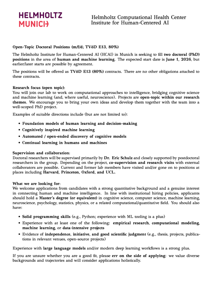 | 01.12.25 | Postdoc in Data Science oder Statistik (m/w/d) | Prof. Dr. Göran Kauermann goeran.kauermann@lmu.de |